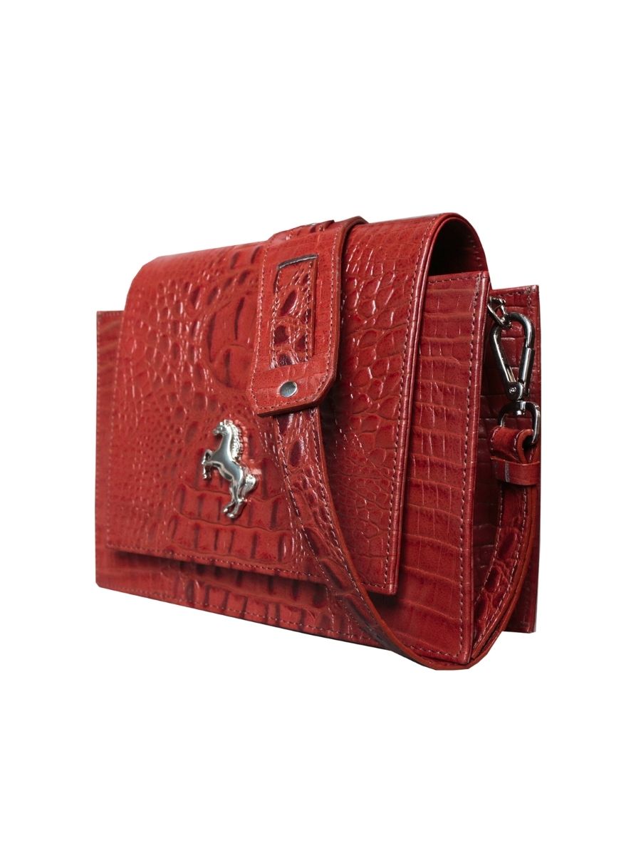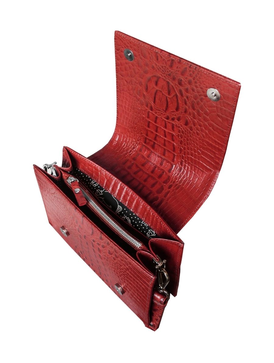 Medium bag with a geometric structure, made of cowhide leather. Includes adjustable and detachable strap for use on the shoulder or crossbody. Lined with our iconic print, it closes with a magnet clasp and has silver hardware.