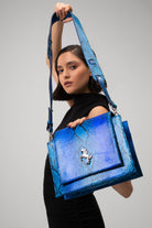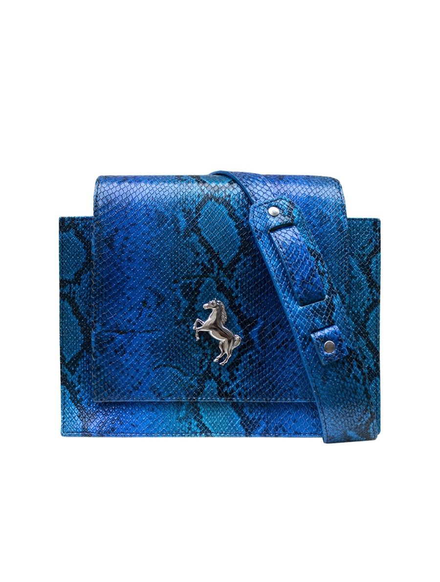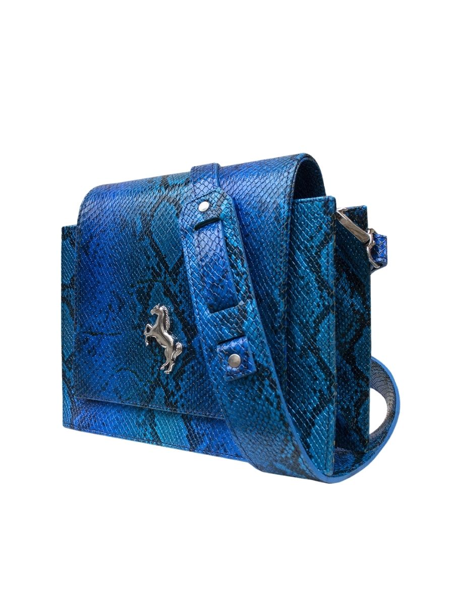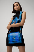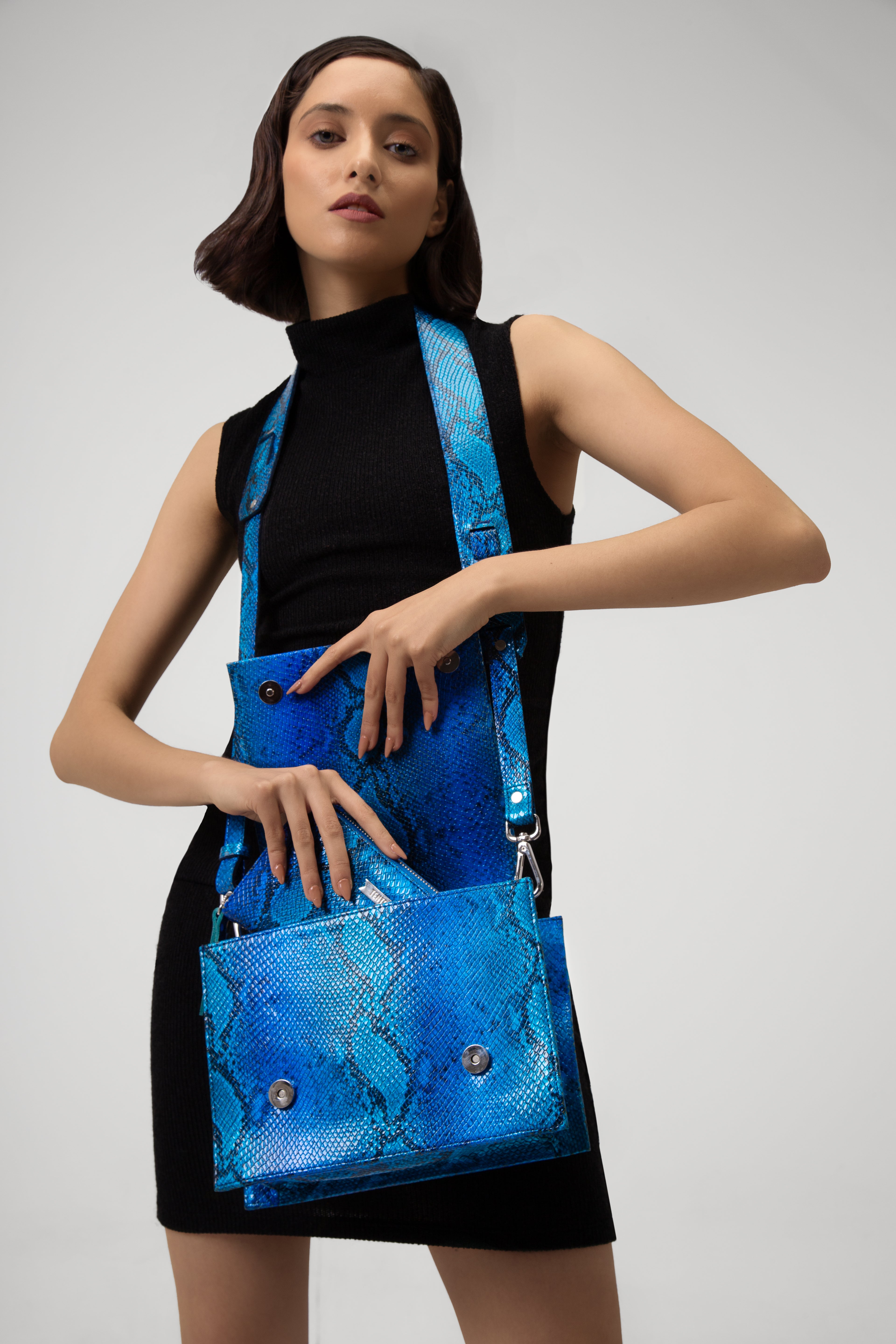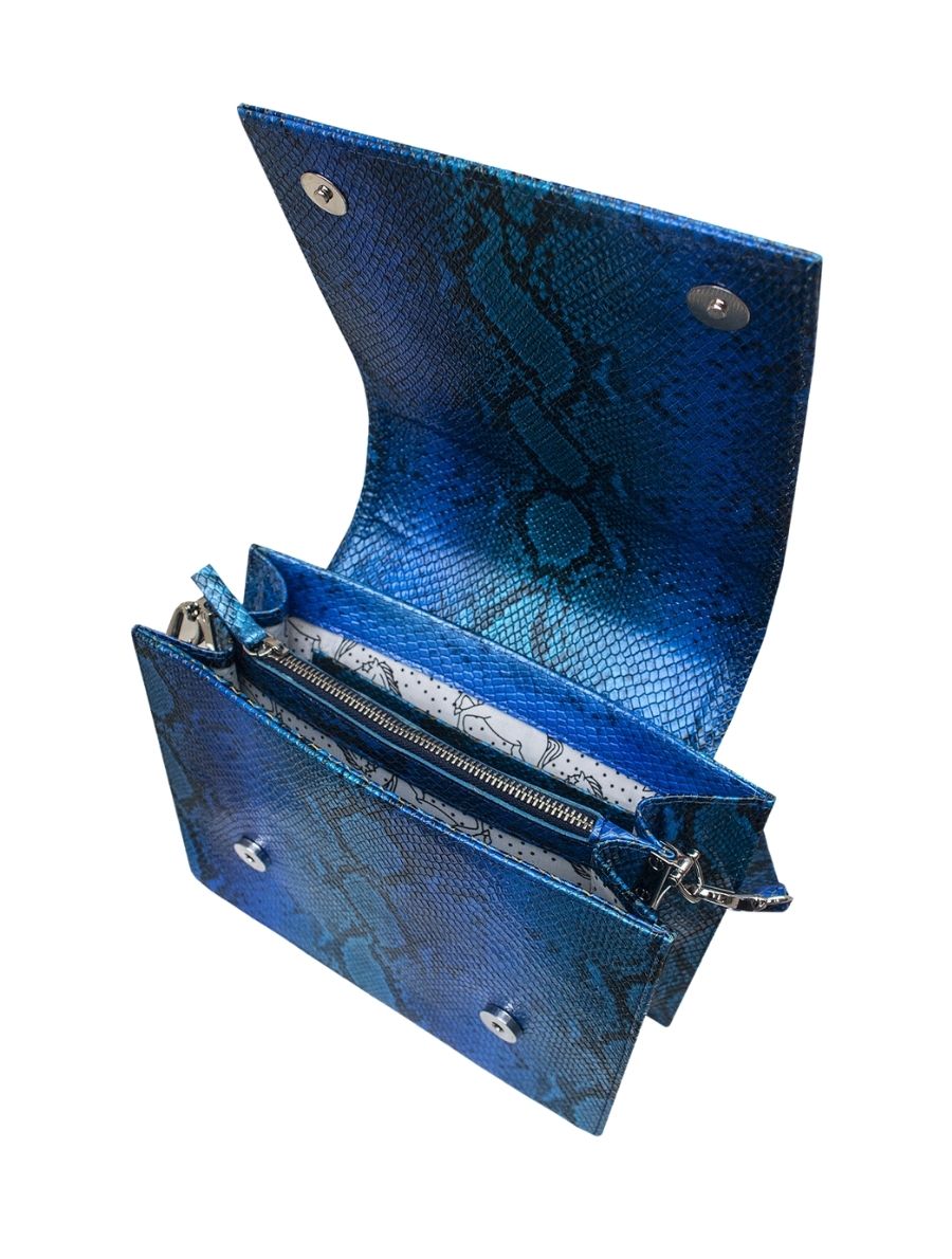 Medium bag with a geometric structure, made of cowhide leather. Includes adjustable and detachable strap for use on the shoulder or crossbody. Lined with our iconic print, it closes with a magnet clasp and has silver hardware.