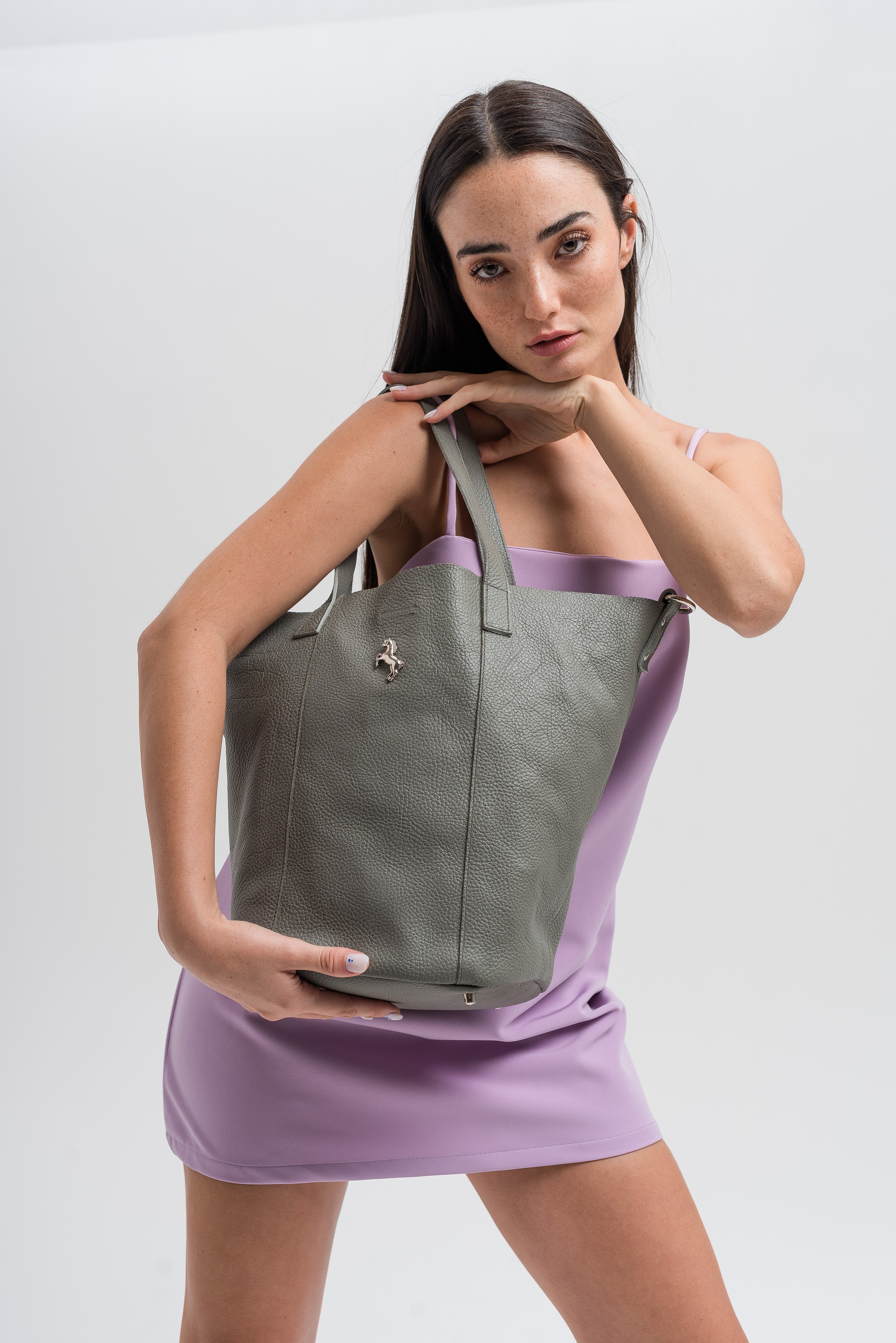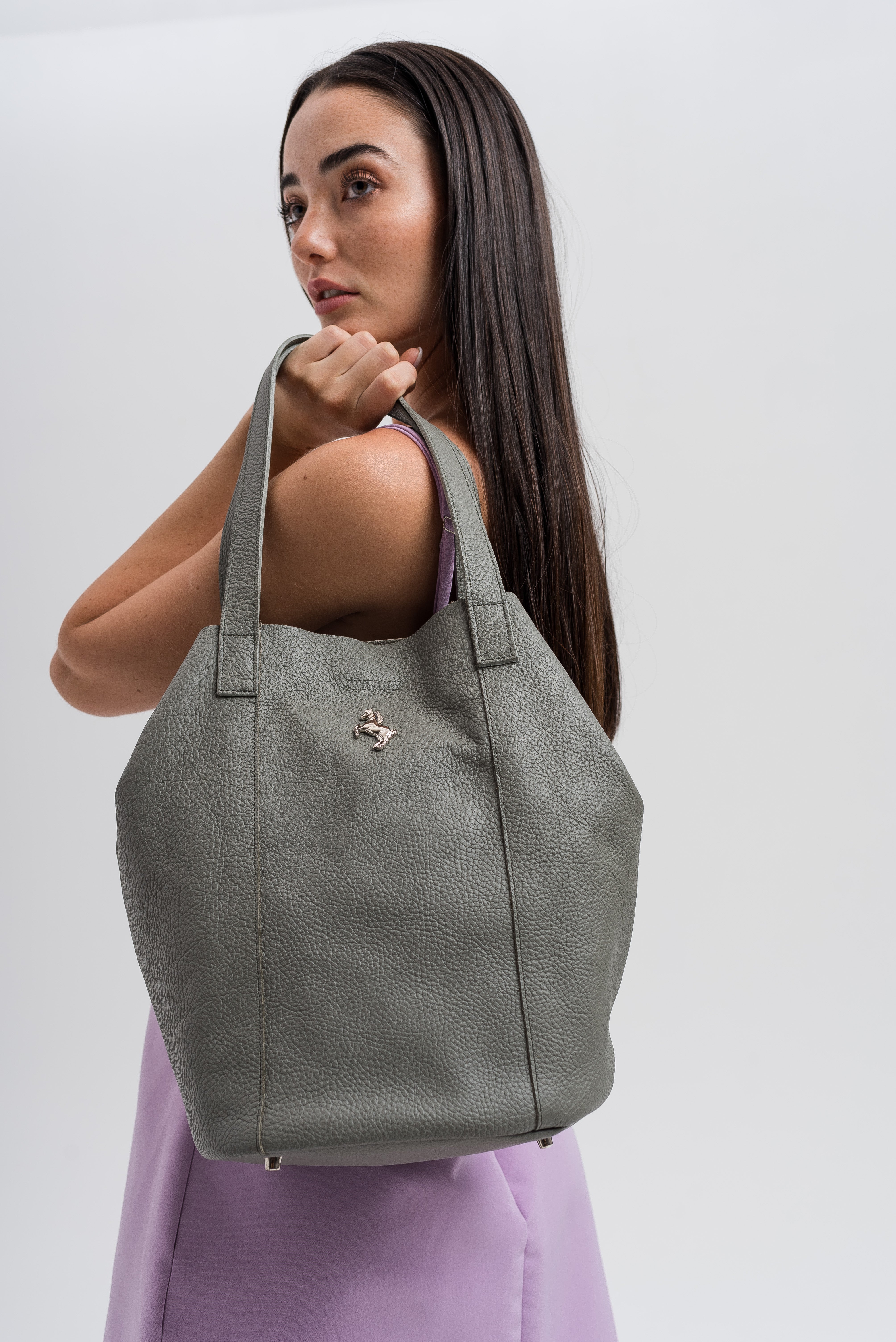 Medium genuine leather bag, with reinforced base, detachable strap and internal zippered pocket. Designed for daily use, its size allows you to carry everything you need. Includes silver hardware and nails on the bottom for greater protection.