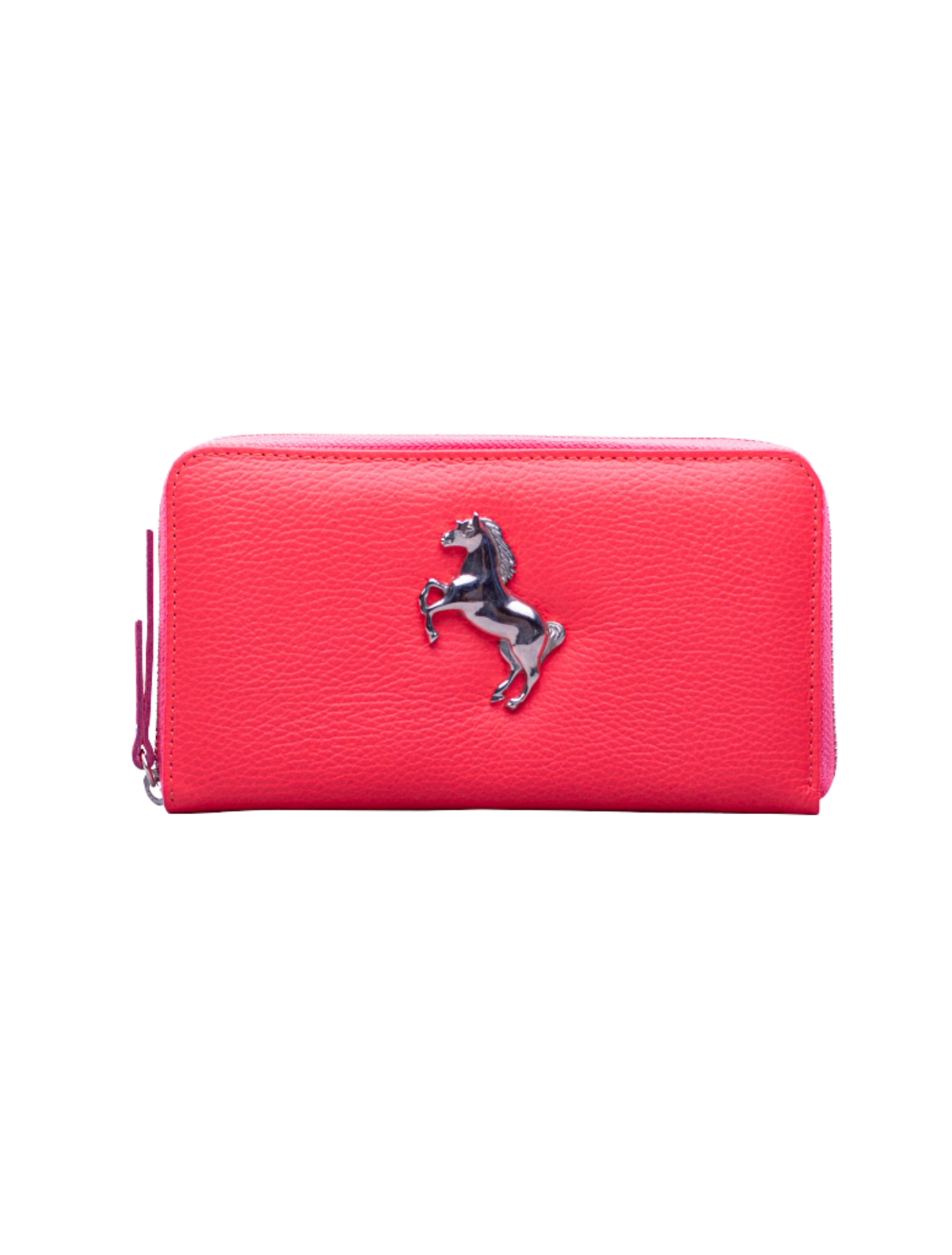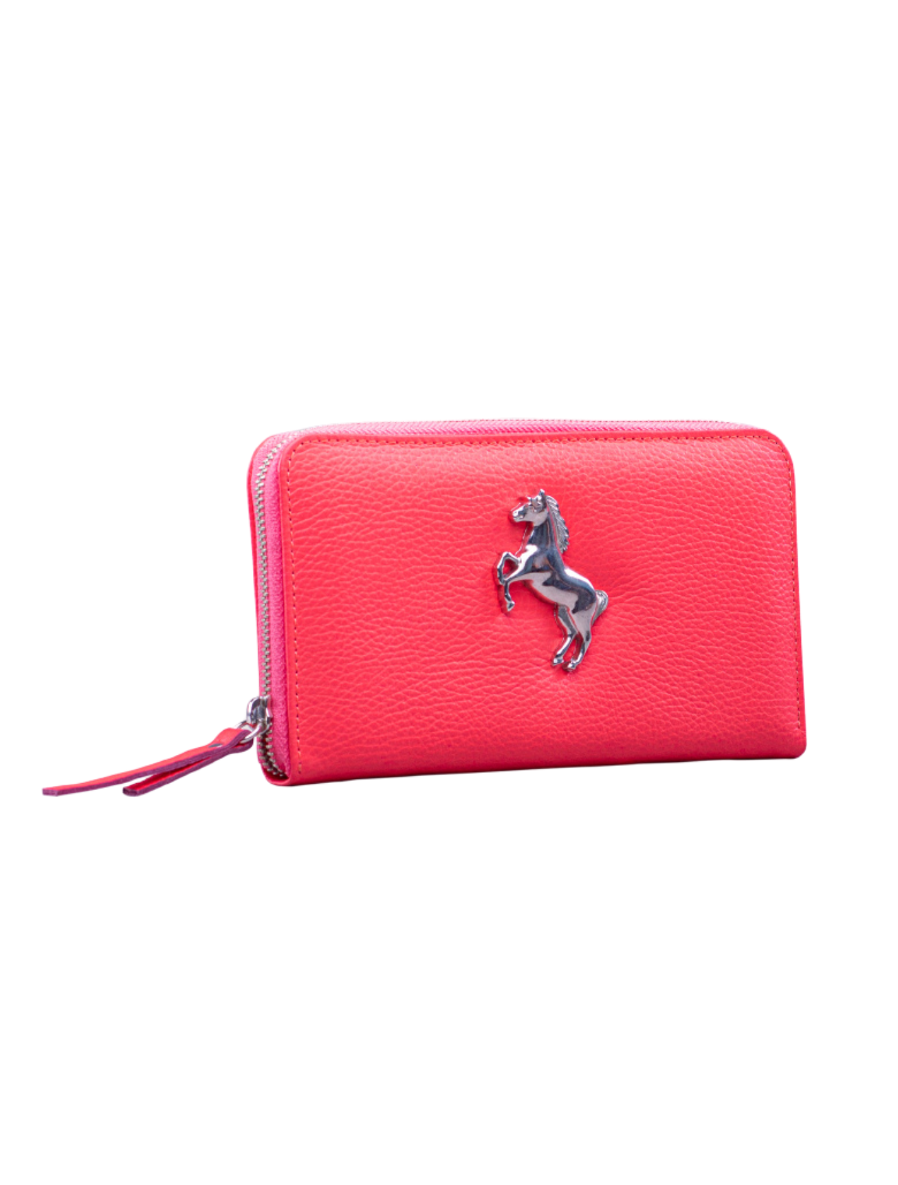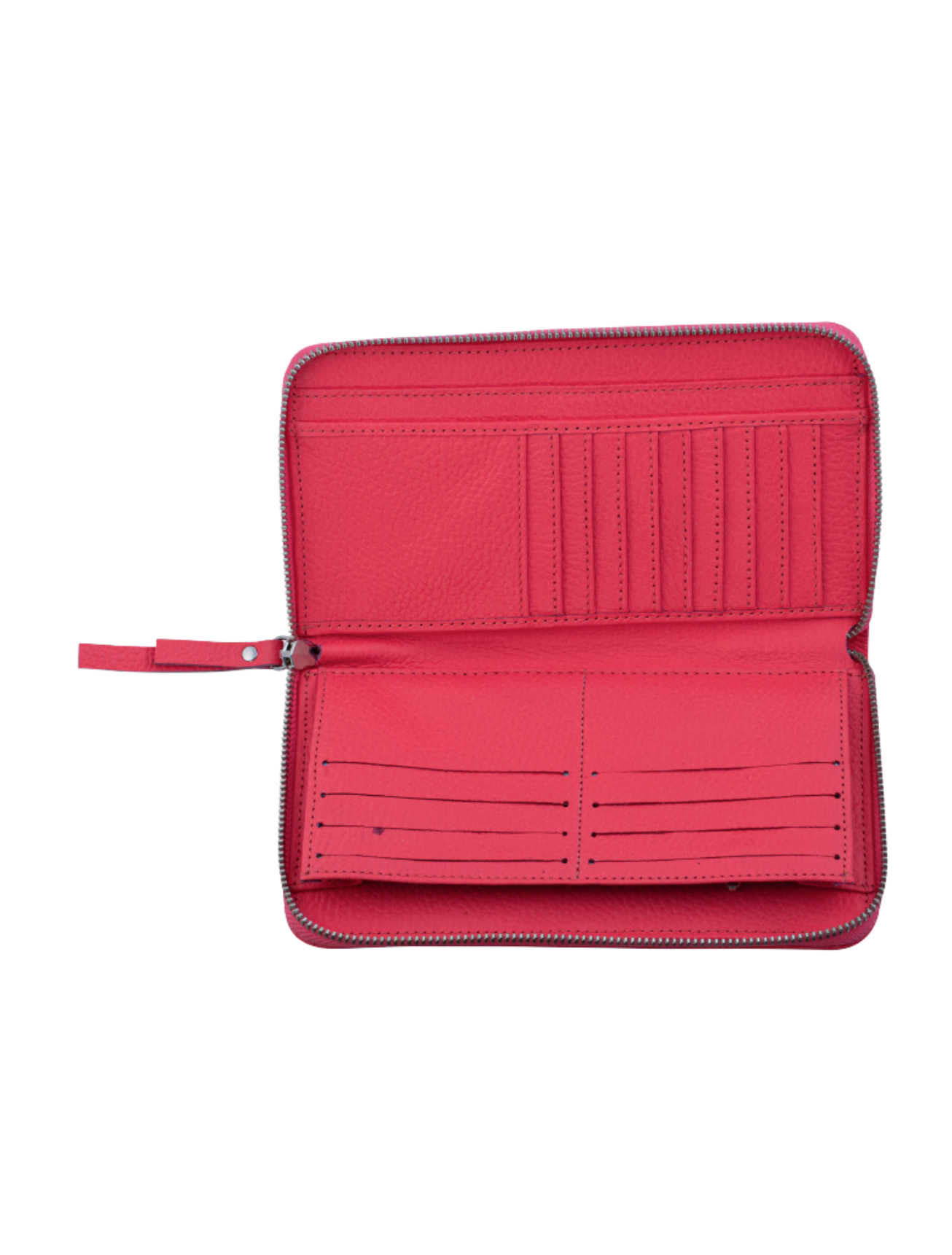 Large wallet with zipper, handmade in genuine leather with silver hardware.