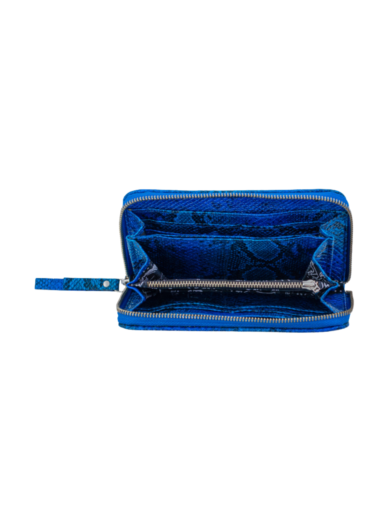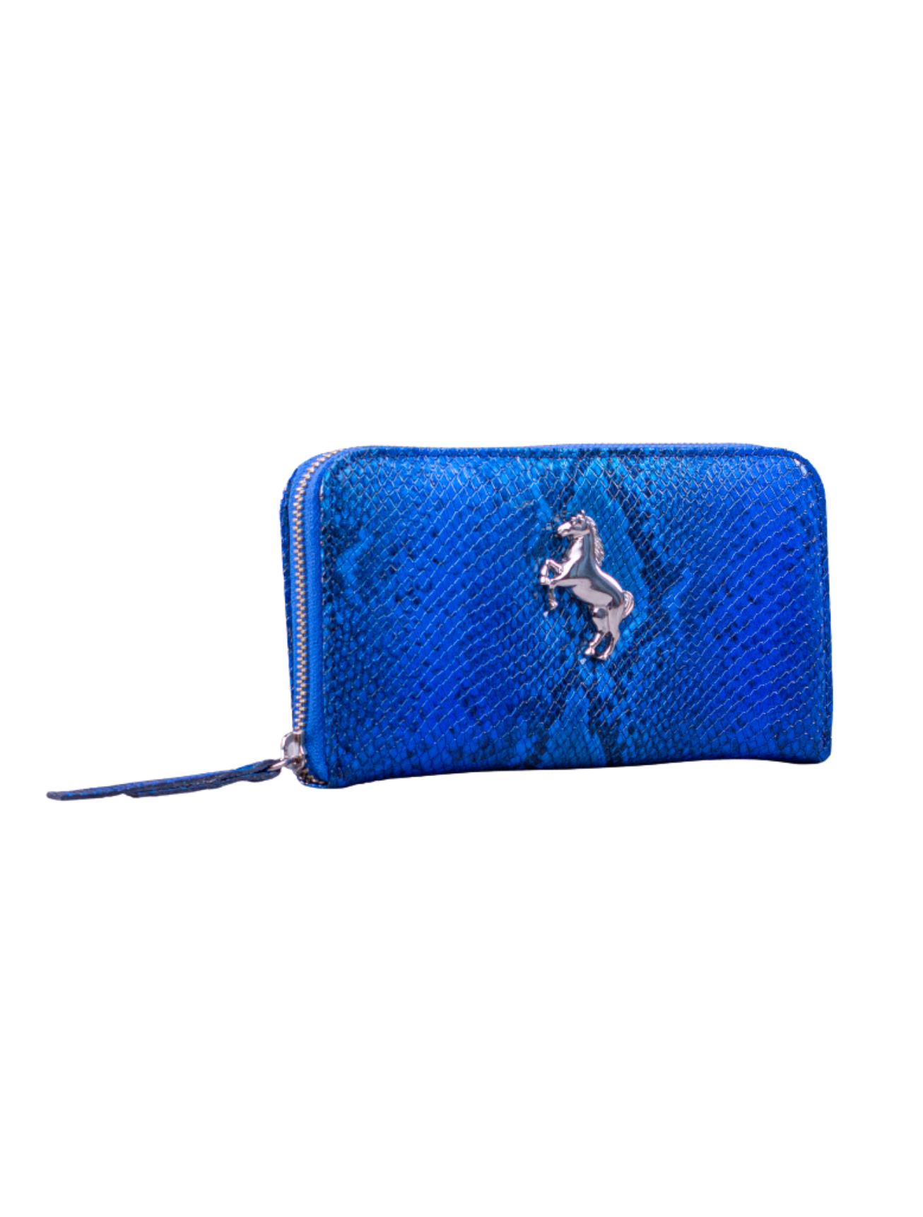 Large wallet with zipper and gusset, handmade in genuine leather with silver hardware.