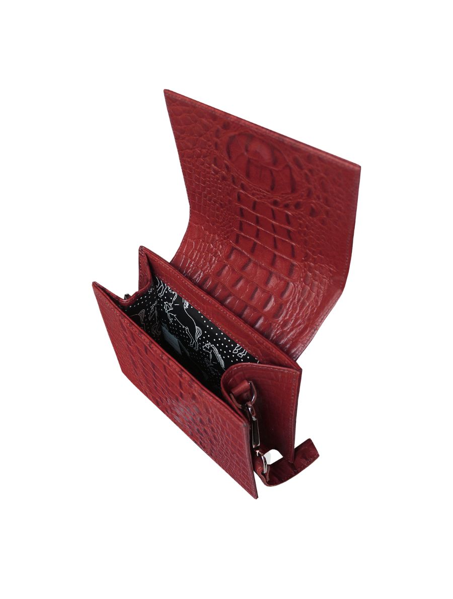 Mini bag with geometric structure, made of engraved genuine leather. Its adjustable and detachable strap allows it to be carried on the shoulder, crossbody or as an envelope. It closes with a magnet clasp, has silver hardware and is lined with the brand's print. Perfect for daily or night use, carrying the essentials.
