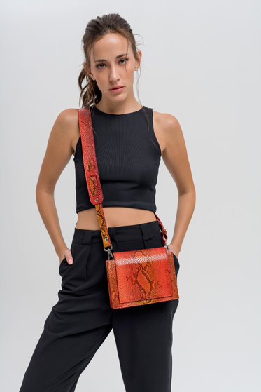 Mini bag with geometric structure, made of engraved genuine leather. Its adjustable and detachable strap allows it to be carried on the shoulder, crossbody or as an envelope. It closes with a magnet clasp, has silver hardware and is lined with the brand's print. Perfect for daily or night use, carrying the essentials.