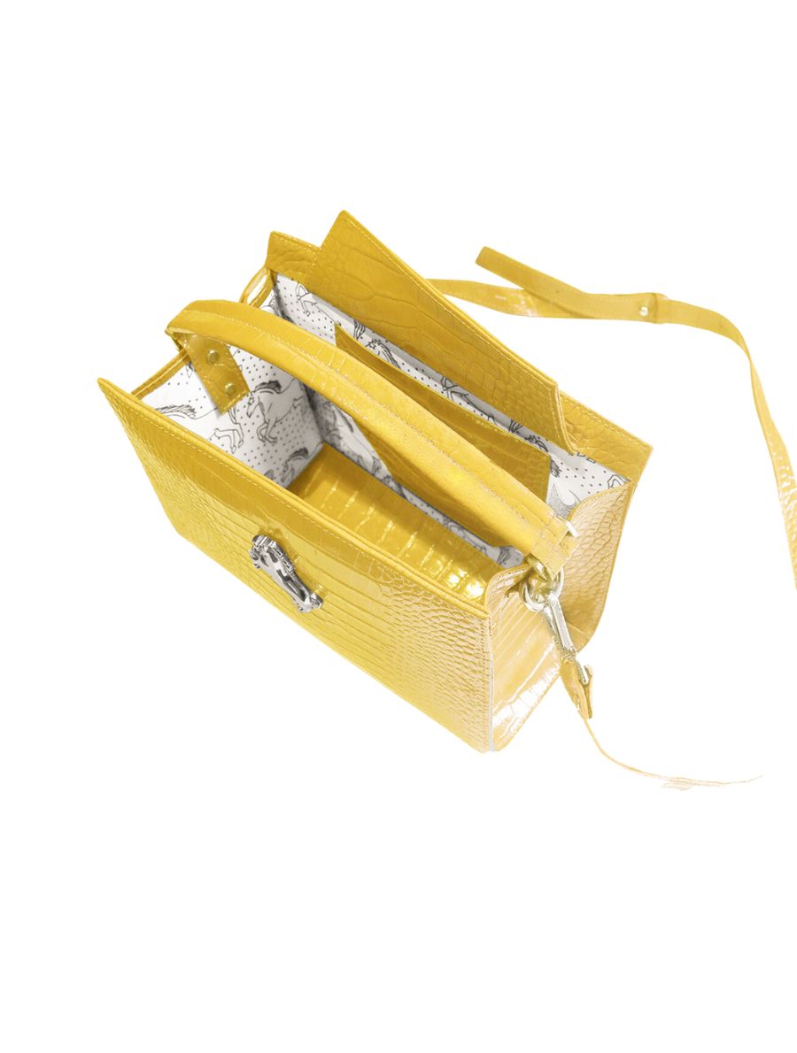 Mini bag from the Horse family, made of genuine leather. With handle for hand or elbow, long detachable strap, and flap closure with invisible double magnet. Lined with our print, it includes background nails and silver hardware. Ideal for those looking for a larger wallet for the night or a more compact one for the day, with greater capacity than other small wallets.