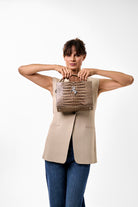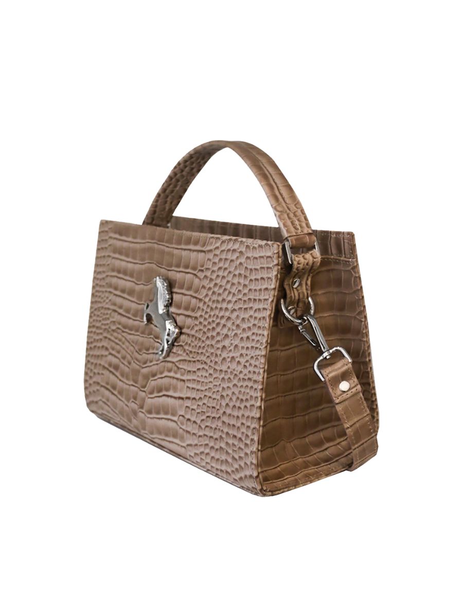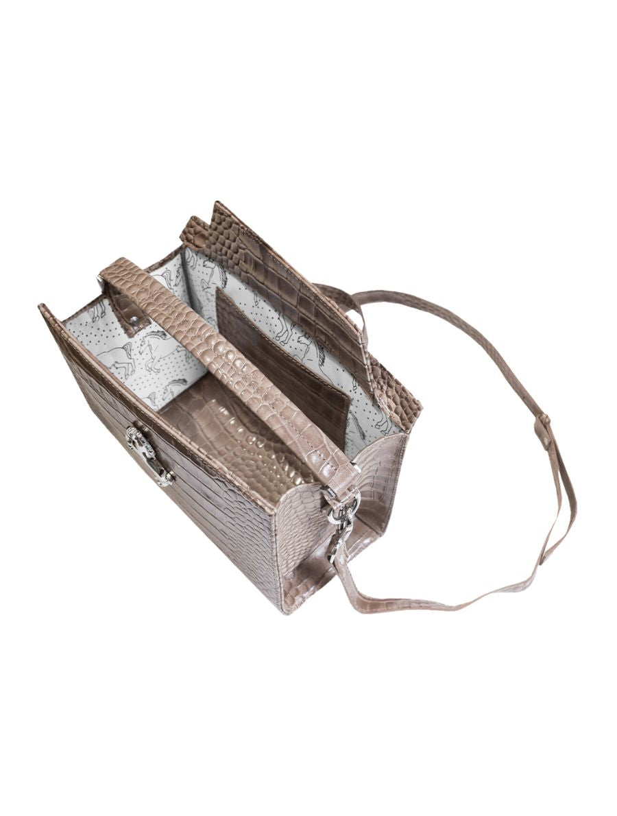 Mini bag from the Horse family, made of genuine leather. With handle for hand or elbow, long detachable strap, and flap closure with invisible double magnet. Lined with our print, it includes background nails and silver hardware. Ideal for those looking for a larger wallet for the night or a more compact one for the day, with greater capacity than other small wallets.