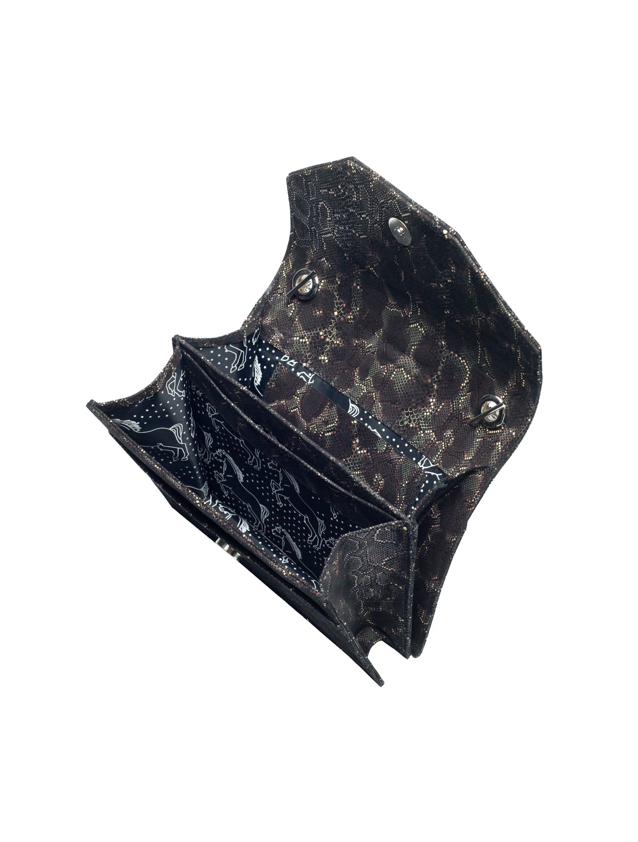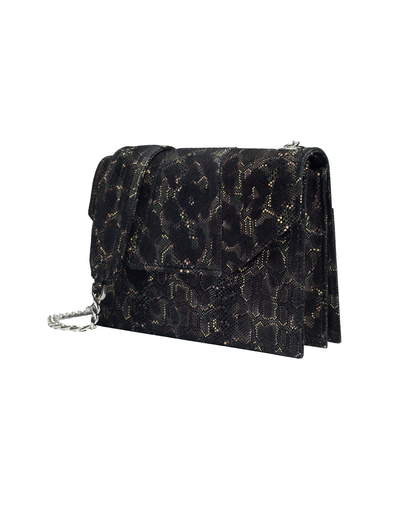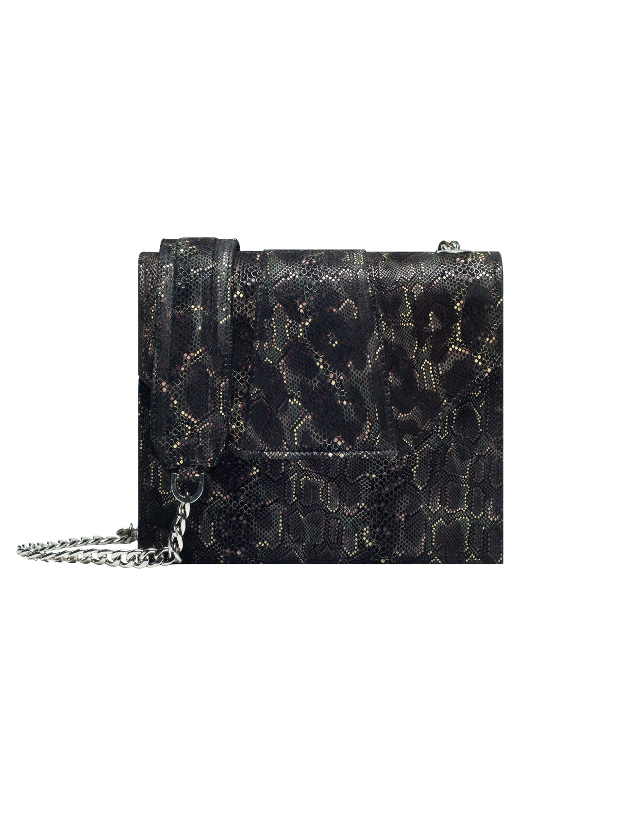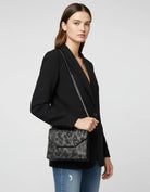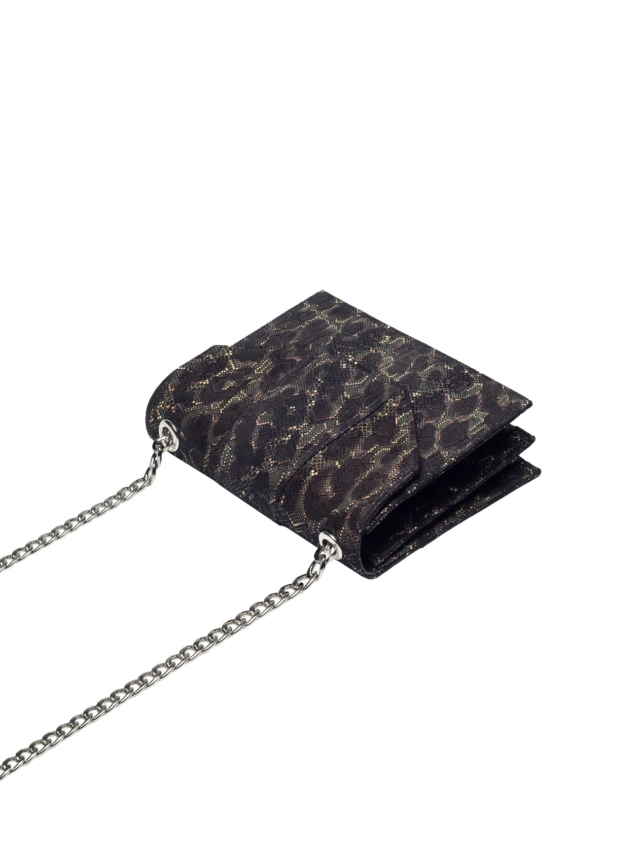 Mini leather bag with delicate stitching and cutout details. Designed with two compartments, a long chain strap interwoven with leather, and a shoulder pad for added comfort. Fully lined with the brand’s signature print and finished with silver-tone hardware, it’s the perfect piece to stand out on special occasions, day or night.