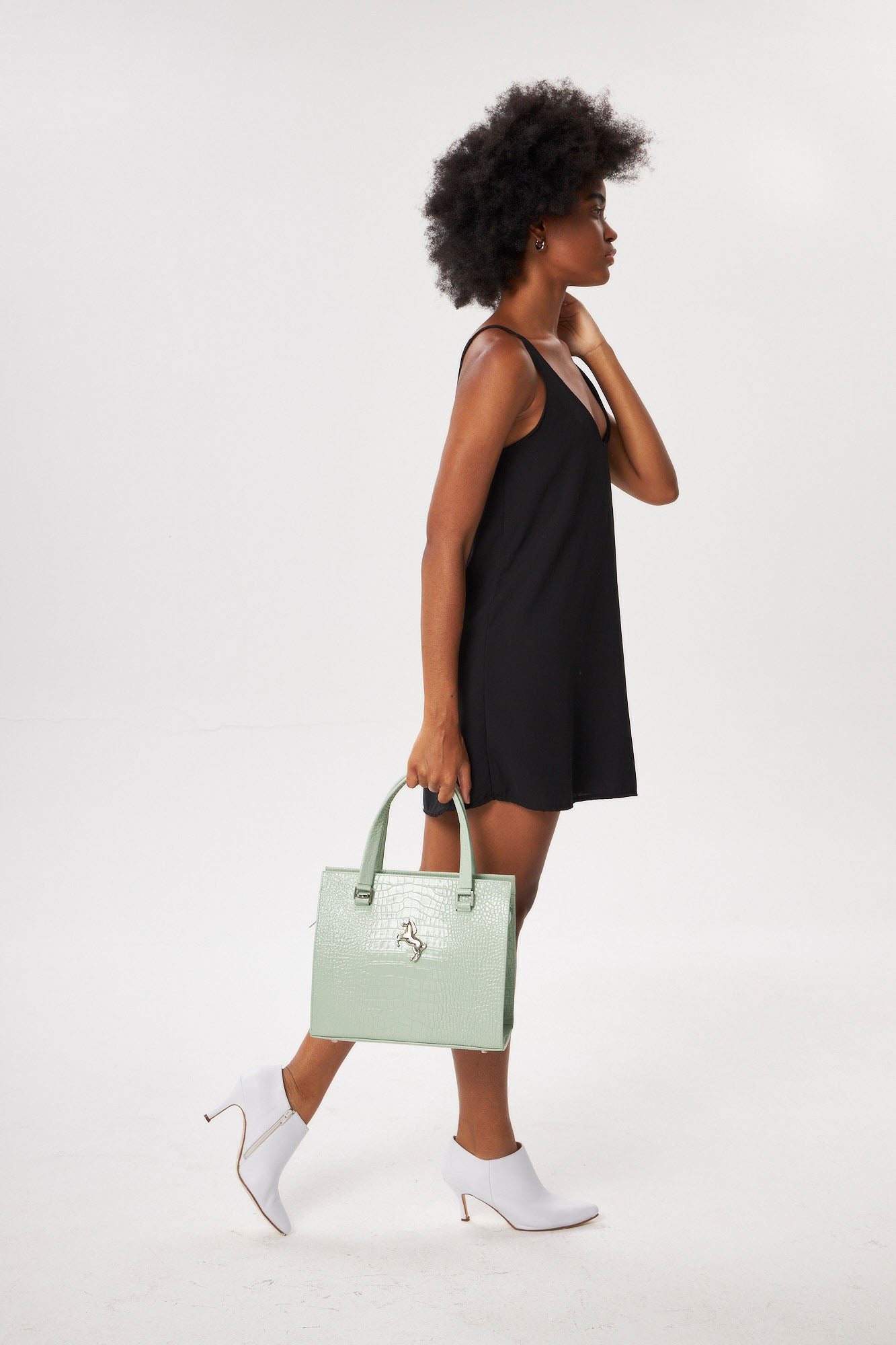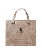 Medium bag in semi-rigid genuine leather, spacious inside and lined with our iconic print. It has handles, adjustable strap, two internal pockets and nails on the base. Ideal for carrying your essentials comfortably.