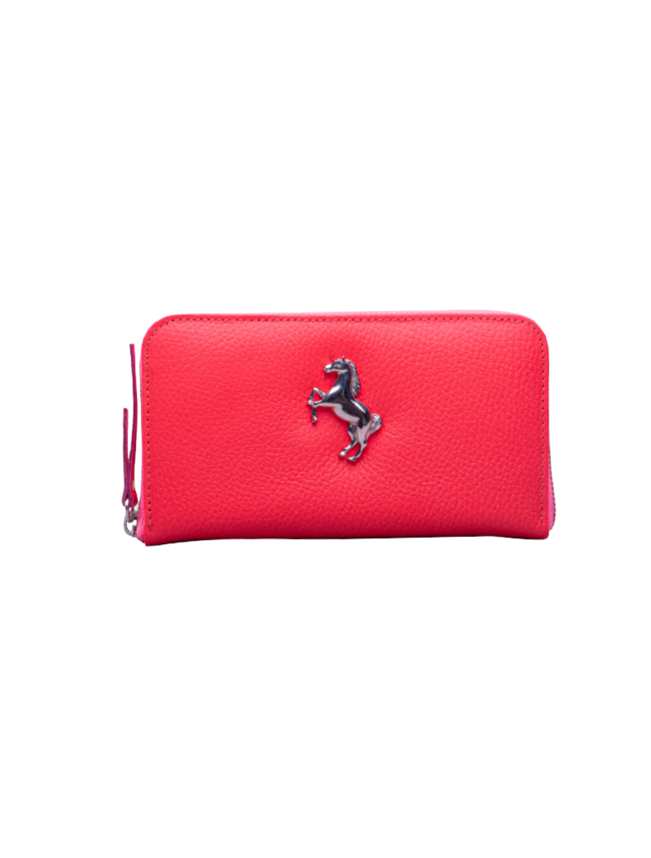 Large wallet with zipper and gusset, handmade in genuine leather with silver hardware.