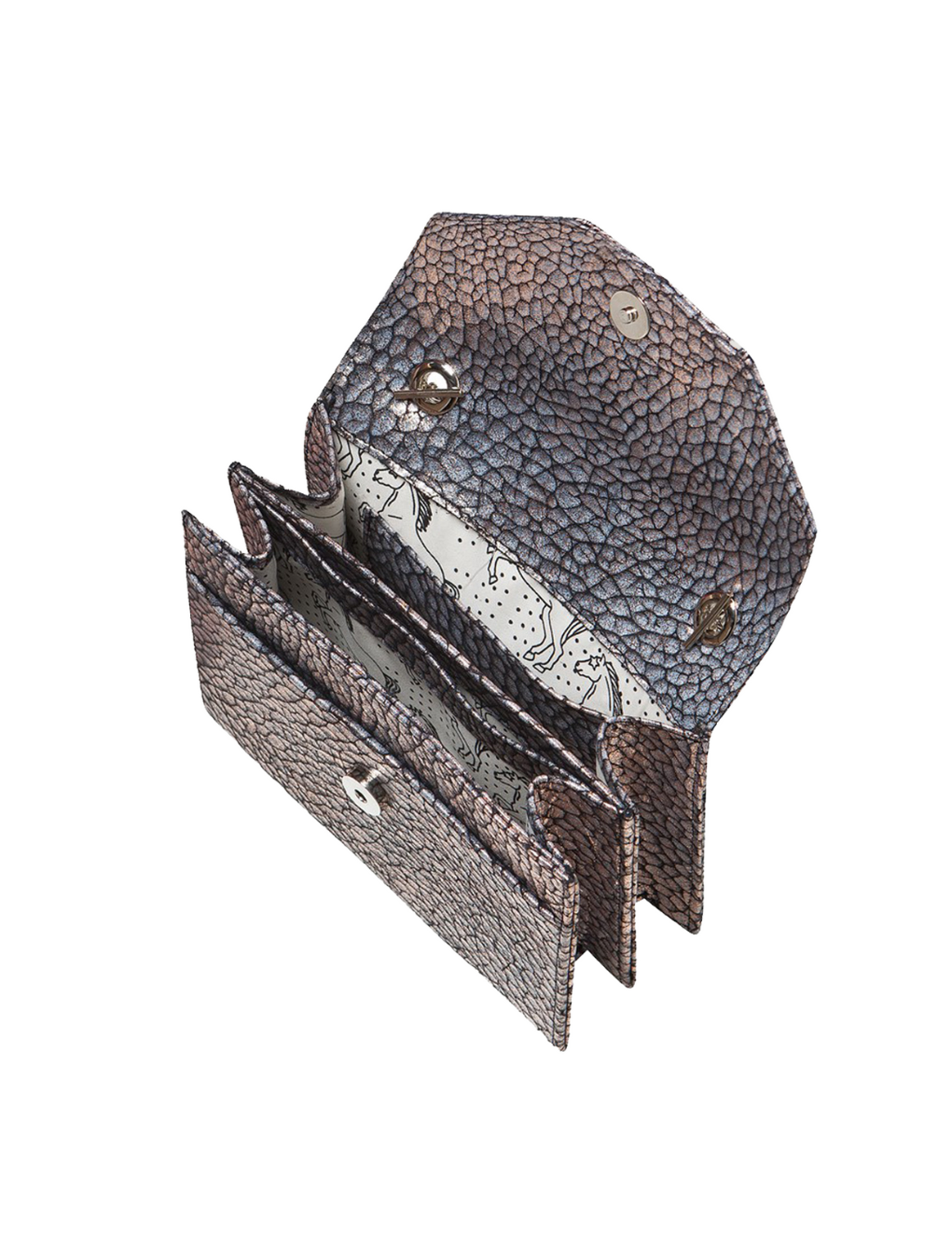 Mini bag in genuine leather, with delicate sewing details and cutouts. It has two compartments, a long chain combined with leather and shoulder pads for greater comfort. Lined with the brand's print and silver hardware, it is perfect to stand out on special occasions, both day and night.